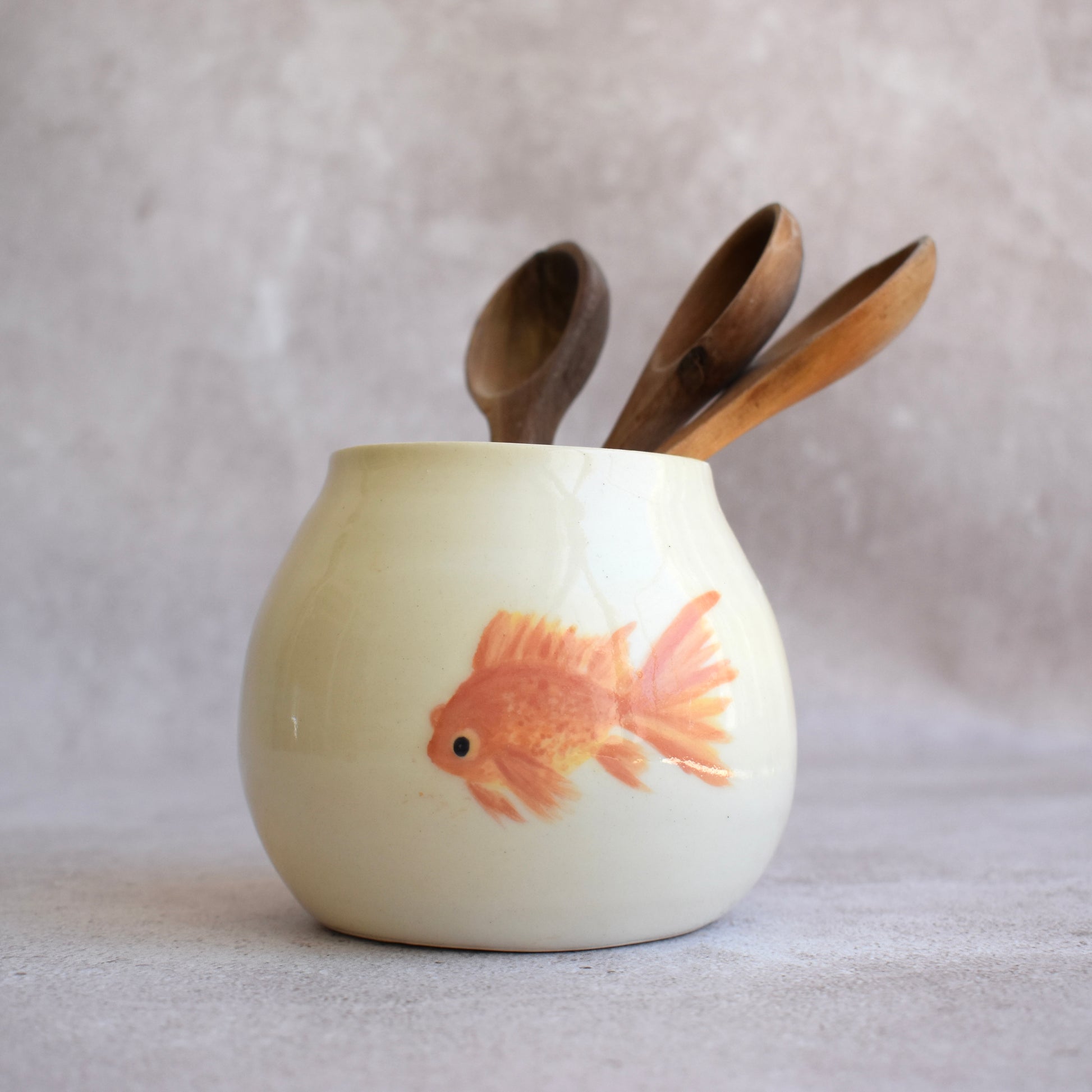 De la colección "de objetos a floreros", me inspiré en mi primera pecera con un pez dorado.