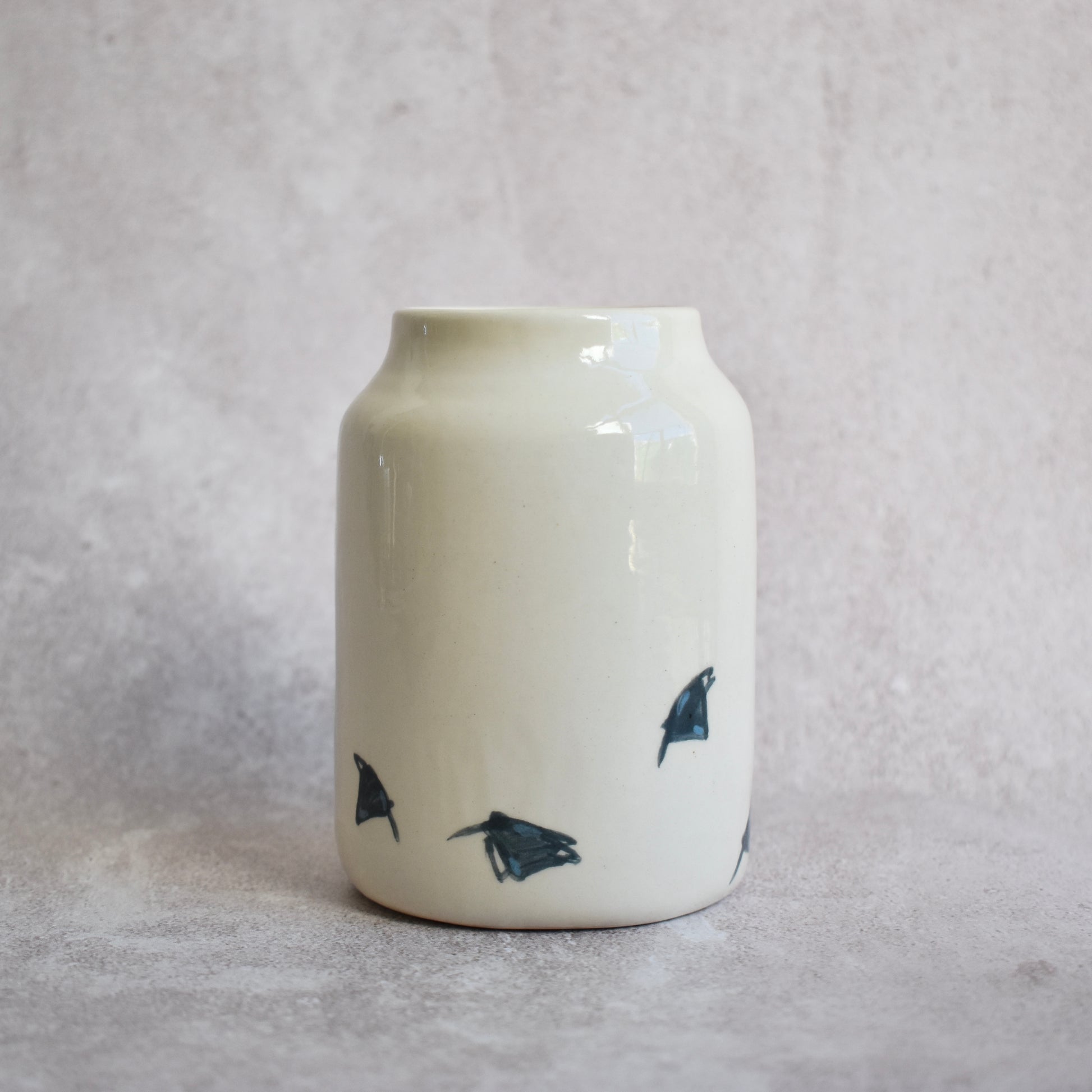 Pequeño florero con mobulas saltarinas, inspirado en los grupos de mobulas que vemos todas las primaveras en el Golfo de California.
