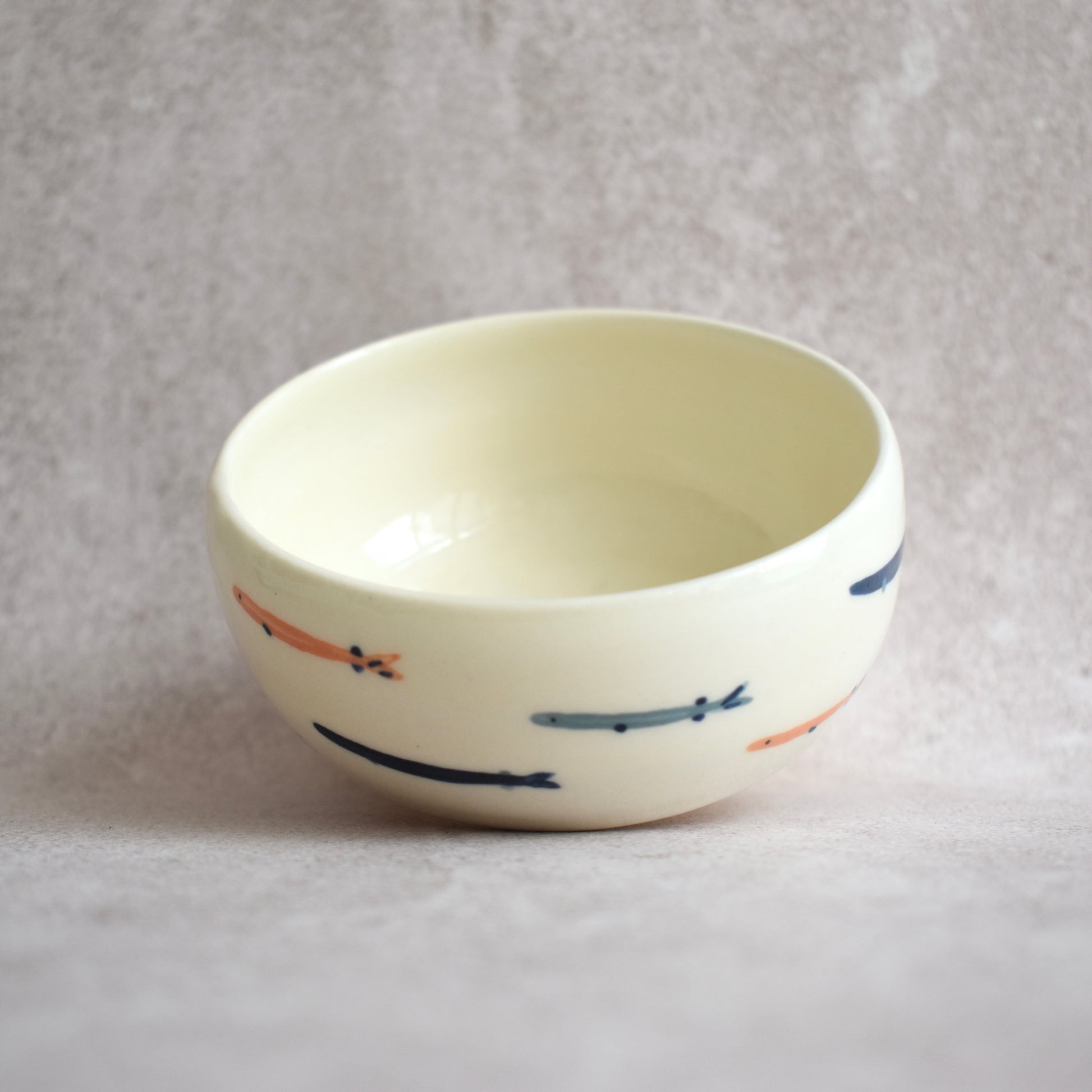 Mini bowl con sardinas coloridas, perfecto para botanas, salsas, helado o lo que se te ocurra — siempre acompañado del encanto de las sardinas.