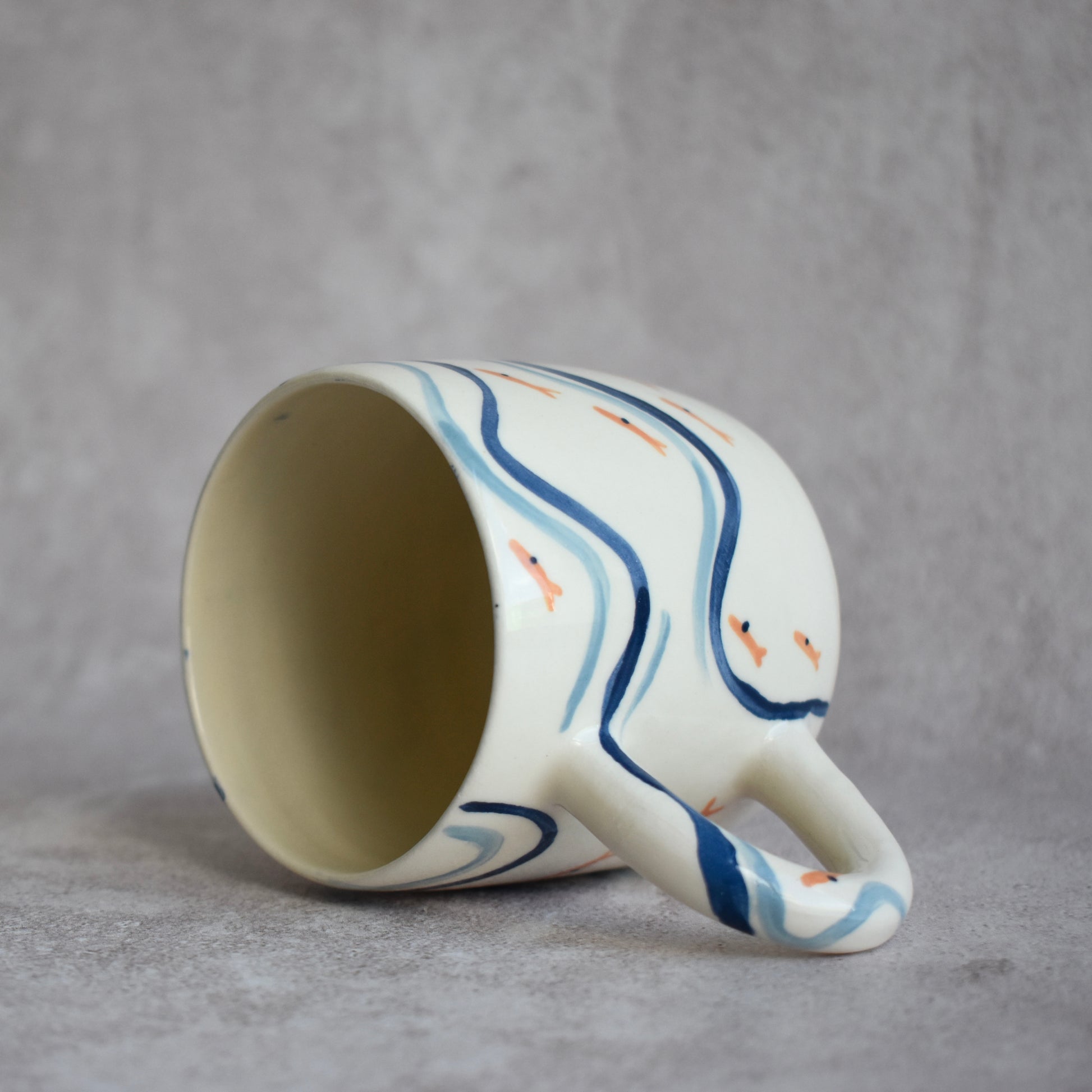 Taza de 350 ml inspirada en los peces que fluyen a donde los lleva la corriente.