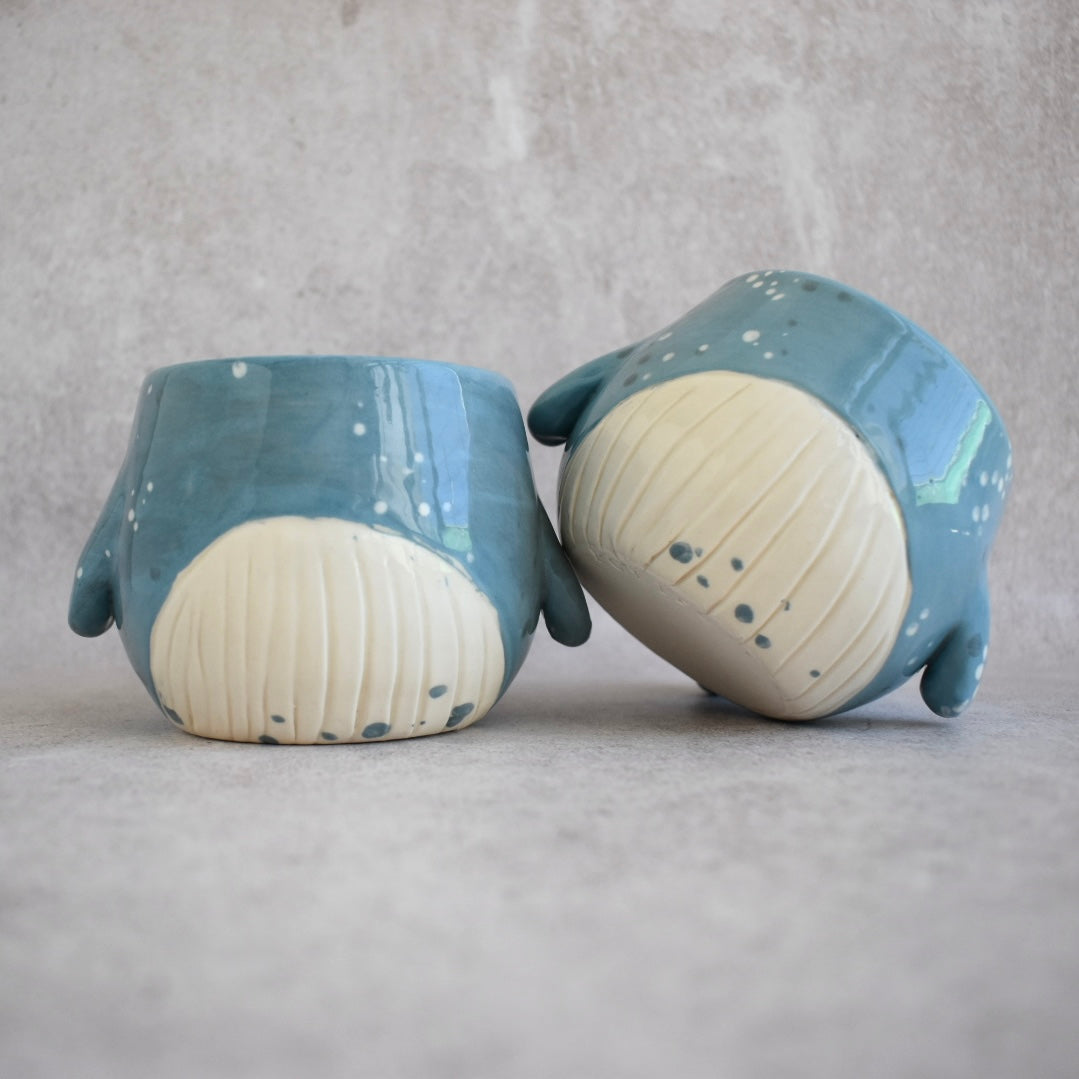 Taza de 400 ml. Inspirada en las ballenas jorobadas que visitan las aguas mexicanas cada invierno regalándonos un espectáculo cada que salen a respirar.